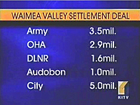 Parties to the settlement include the City & County of Honolulu -- who have already paid $5.1 million towards the settlement -- the Office of Hawaiian Affairs, the Hawai'i State Department of Land and Natural Resources, the National Audubon Society, and the U.S. Army (which has indicated a desire to maintain a "buffer zone" between the Valley and their adjoining property). Although not the settlement was not officially announced until 5:45 PM, Mayor Hannemann had called a highly-unusual emergency meeting with the City Council at 11:00 AM this morning (Friday) where the offer was presented to the City Council for their approval.