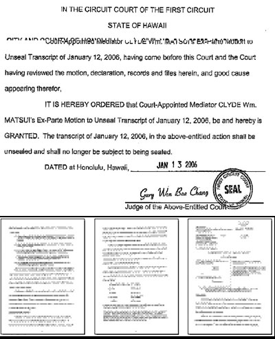 Role of the United States Army in closing the deal revealed "...this mission would never have been obtained without the willingness of the Army to truly go above and beyond the call." In an unusual action, Hawai'i's First Circuit Court has released a statement about the final stages, inner workings and details of the recent Settlement of the Waimea Valley case. Civil Case 01-1-03622-12 was settled out of court on January 13, 2006 by the court-appointed Mediator, Clyde Wm. Matsui. After the settlement was announced in front-page news, Mr. Matsui asked the presiding Judge on the case, Judge Gary W.B. Chang, to release a personal note to the public. The complete public document is published here; click the image below to download it.
